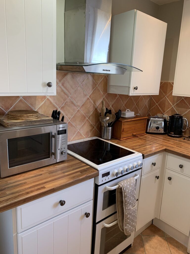 The cottage comprises a cosy living room with television and a multi fuel stove (fuel for which is provided) and a separate fully equipped kitchen.